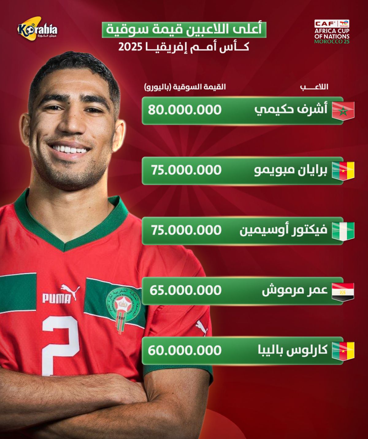 ويرصد " كورابيا " اللاعبين الأعلي قيمة تسويقية قبل انطلاق بطولة الكان الإفريقية.