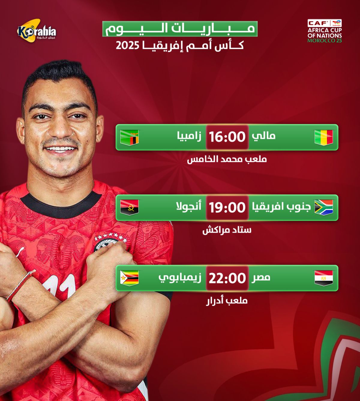 مباريات اليوم الاثنين 22-12-2025 في أمم إفريقيا